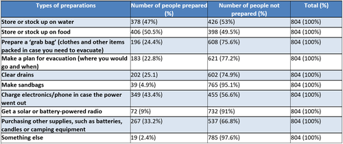 Figure 8. Shows the types of preparations completed before the extreme weather events as reported by the mother/primary caregiver.